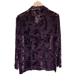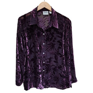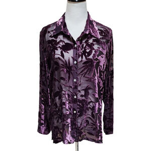 Chico's Burnout Velvet Top Button Down Purple Bead Embellished Size 2 / L / 12