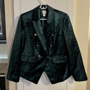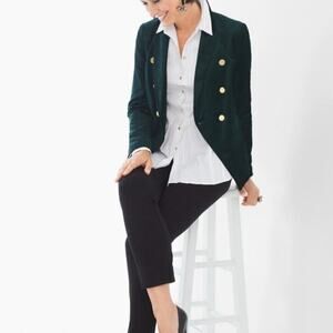 Chico’s Velveteen Blazer in Swiss Pine Green Velvet Burnout Size Medium