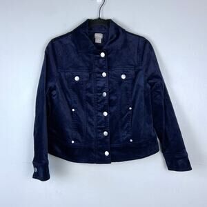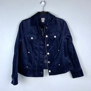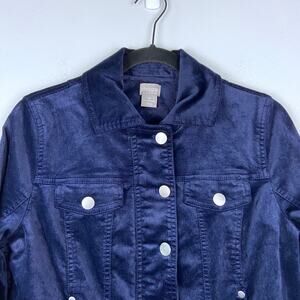 Chico's Velveteen Moto Jacket Navy Zip Button Down Collared Petite 1P 8/10