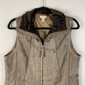 Chicos Vest Jacket Womens 1 US Medium Full Zip Brown Pockets Sleeveless