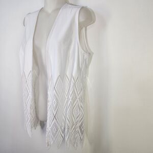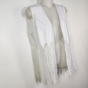 Chico's Vest Sz 0 US 4 White Sleeveless Open Front Cutout Geometric Poly Stretch