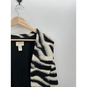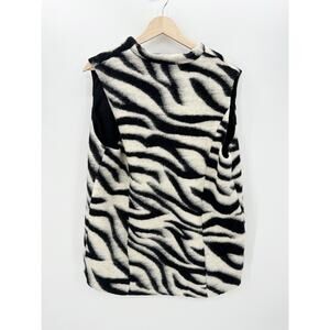 Chico's Vest Women 2 Large Bi-Color Zebra-Print Open Front Wool Polyester Blend
