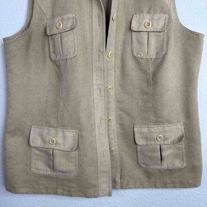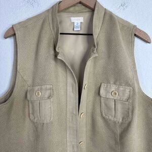 Chicos Vest Women's Size 2/Large Tan Faux Suede Button Safari Outdoor Utility