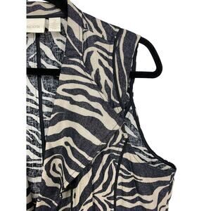 Chicos Vest Womens Sz 2 US L Zebra Print Black Cream Shimmer Metallic