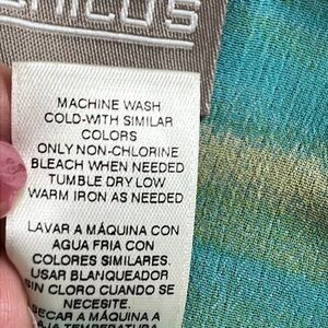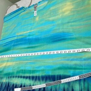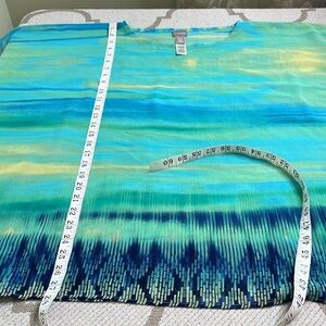 Chico's top featuring vibrant blue and yellow hues. Crafted from 100% polyester.