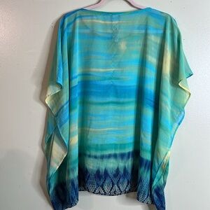 Chico's Vibrant Blue and Yellow Poncho top, semi sheer, size small/ medium