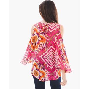 Chico's Vibrant Tiles Cold-Shoulder Top size 2 Large