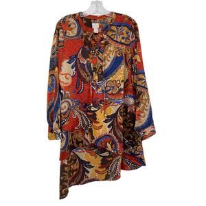 Chico's Victorian Style Asymmetrical Paisley Peasant Tunic Top Size M 1 Flowy