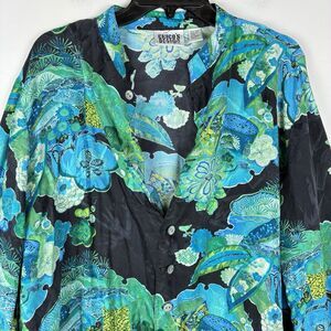 Chicos Vintage 100% Silk Button Down Jacket Artsy Colorful 3 / XL Lagenlook