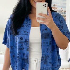 Chico’s Vintage 90s African Jungle Icon Silk Linen Button Down Top