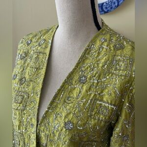 Chico's | Vintage 90s Silk Statement All Over Sequin Blazer, Chartreuse Green