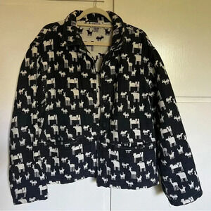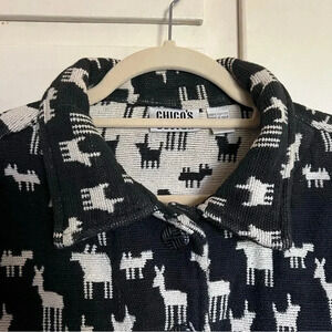 Vintage Chico’s Black Cream Llama Print Cotton Jacket Size Large