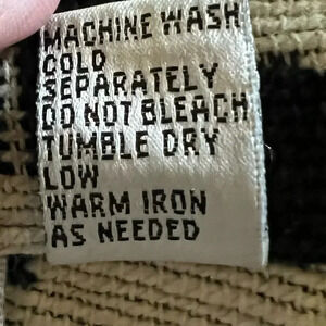 This very unique vintage black and cream jacket is a woven tapestry fabric, 100% cotton, with llamas (animals) printed on the fabric. Two functional front pockets. Sleeves can be rolled at cuffs. 5 button front closure.
