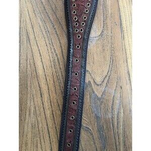 I purchased this early 90s while living in Florida & have worn this once. 1.75"-2.75" Width Adjustable 34"-38" The brass buckle is heavy and needs polished. Photographs are part of the condition description. Will ship in a box. Smoke free home.