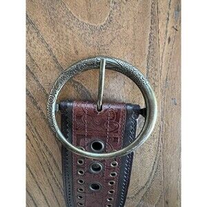 Chico’s Vintage Brass Buckle & Rivets Botanical Tooled Design Size 34"-38"