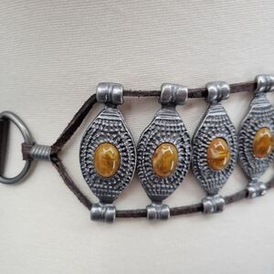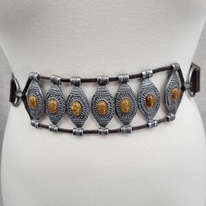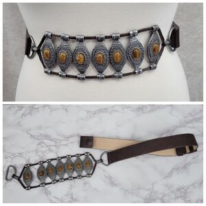 Chico's Vintage Brown Boho Cabochon Studded Adjustable Slide Belt Small Medium