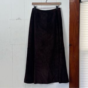 Chico's Vintage Brown Suede Leather MIDI Skirt Size Medium