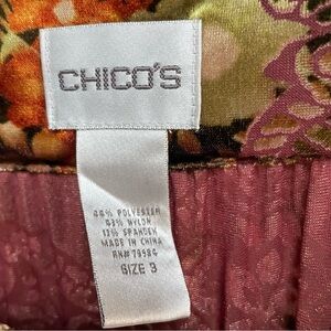 Chico’s Vintage Burnout Metallic Velvet Elastic Waist Wrist Tie Blouson Crew Neck Top