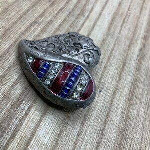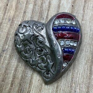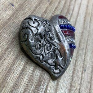 Chico's Vintage Distressed Heart Silver Tone Rhinestone Brooch Pin
