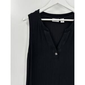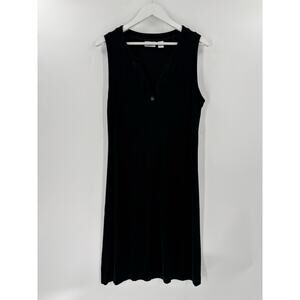 Chicos Vintage Dress Womens XL Black Sleeveless Midi V Neck Pullover Stretchy