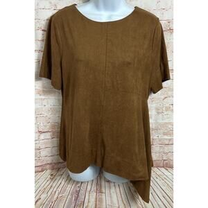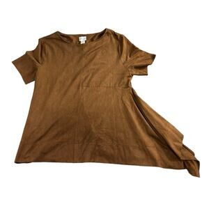 Chico's Vintage Gaucho Pant Set Brown Sz 0 (4) Suede Like Short Sleeve