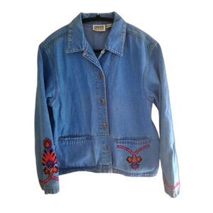 Great preowned condition Vintage Chico's Embroidered Jean Jacket