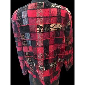 Chico’s Vintage Silk Patchwork Crushed Velvet Jacket Red Black XL 3
