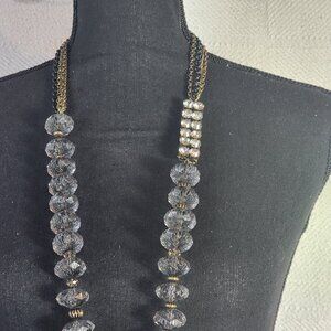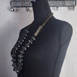 Chico's Vintage Mesh Caged Crystal and Gold Tone Metal Beads with Double Row Rhinestone Bling Multi Strand 34.5" Necklace with 4" Extender...This is one is Unforgettable with so many Fashion Points on one Necklace...The Rhinestones the Crystals the Gold Tone Beading the Double Barrel Connector of Four Chains...What a Necklace....Like Brand New.....