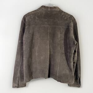 Chico's WOMENS Brown Leather Embroidered Lined Full Zip Coat Jacket SIZE 3