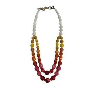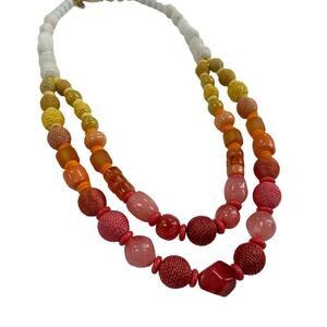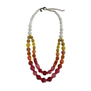 Chico's Warm Multicolor Beaded Lobster Claw Two Strand Statement Necklace