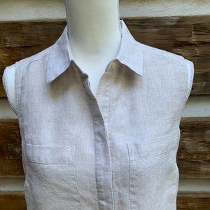 Chico's Washable linen Side Slit Tunic Top Shirt Natural tan Sz 0 (4) Small