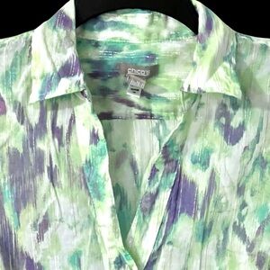 Chico’s Watercolor Blouse Lilac Green Shimmery Thread Size 1 (Small) 8-10 Top