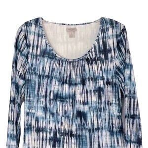 Easywear By Chico's Watercolor Blue 3/4 Sleeve Stretchy Scoop Neck Knit Top Size 1 M