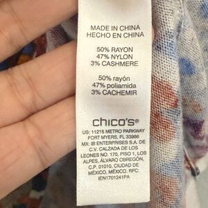 Chico's Watercolor Fall Colors Cashmere Blend, 3/4 Sleeve Sweater, size XL 16 or Chico’s 3