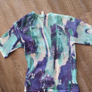 Chico's Watercolor Open Front Cardigan Teal Blue White Size Small/ Chico's 0