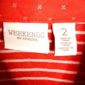 Chico’s Weekend red soft knit quilted nautical Americana full zip vest large. Great condition. Measurements are: 26” from shoulder to hem, and 22” from armpit to armpit.