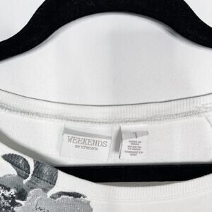 Chicos Weekend Size 1 Medium M White Gray Floral Embellished Pullover Sweater