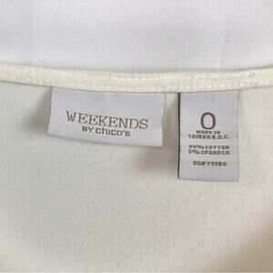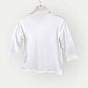 Chico's Weekend White & Silver Tee Shirt Floral Design Embellishment 3/4 Sleeves