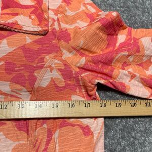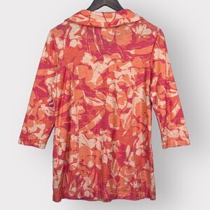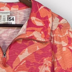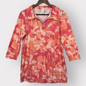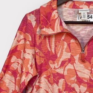 Chico's Weekends 1/4 Zip Top Women Size S/4 (0) Pink Floral 3/4 Sleeve Pockets