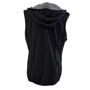 Chico's Weekends Black White Reversible Polka Dot Stripe Hooded Vest Pockets