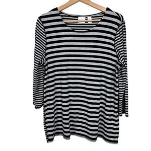Chico's Weekends Black and Gray Striped 3/4 Sleeve Top Size 2 (U.S. Large)