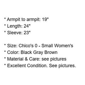 Chicos Weekends Jacket 0 Women's Small 4 Black Gray Brown Zip Stretch Knit Velour