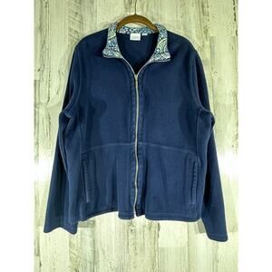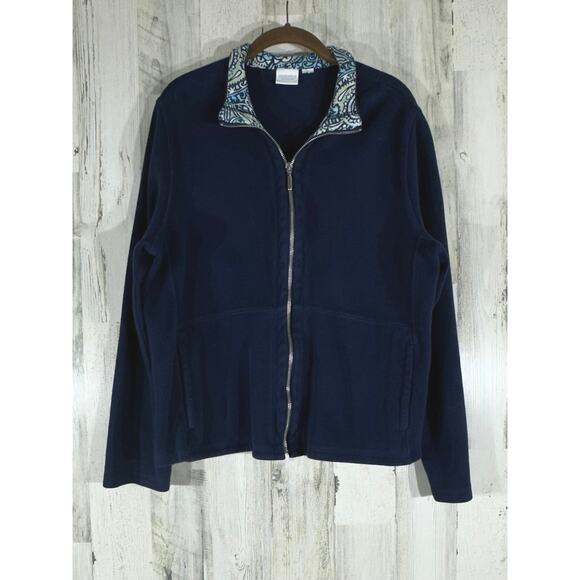 Item: Chicos Weekends Jacket Size 3 or XL Navy Blue Full Zip Pockets Cotton Blend