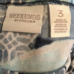 Chicos Weekends Pullover Top Size 3 US XL Geometric Blue Purple Long Sleeve