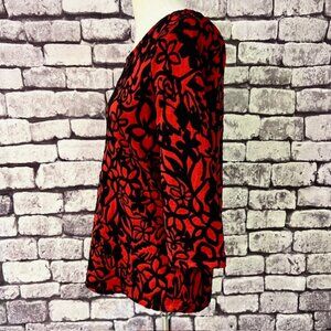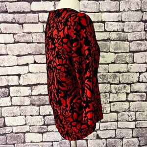 Chico's Weekends Red & Black 3/4 Sleeve Rounded Bottom Size S