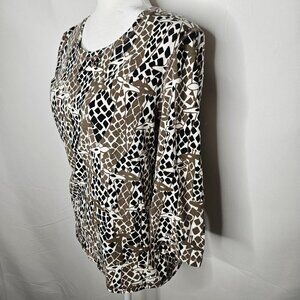 Chico's Weekends Safari Giraffe Animal Print Top Size 2 Large Brown