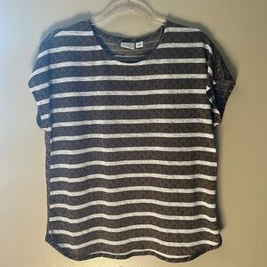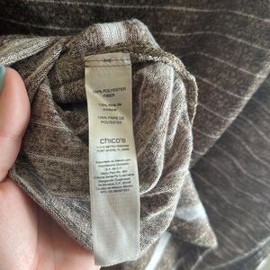 Brown and white striped. Front has bigger stripes than the back as pictured