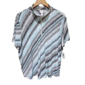 Chico's Weekends Top Bias Wave Zip S/S Polo Size 4 / XXL / 20
