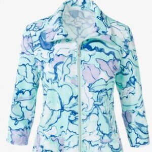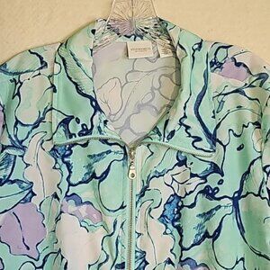 Chico's Weekends Watercolor Leaves Ella Full Zip Light Jacket Coat Size Large