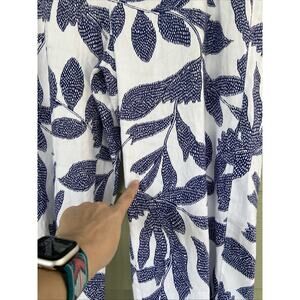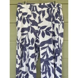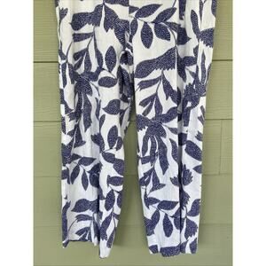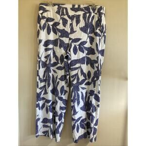 Chicos White Blue Linen Blend Leaf Print Pull On Wide Leg Pants Womens 3R 16R